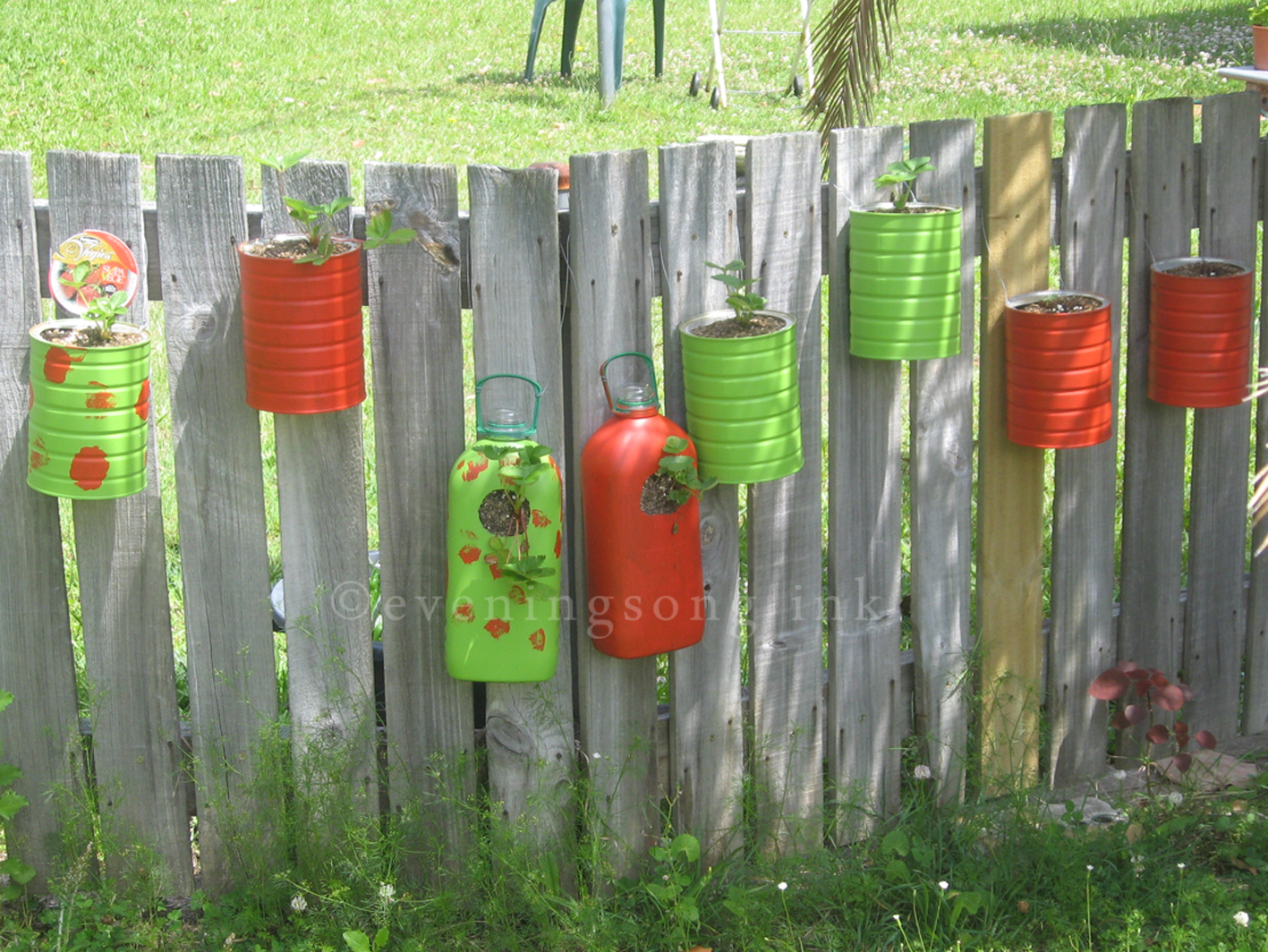 - Can planters - drill two holes at the top of the can opposite each other to thread a hanging wire through. Sand the holes lightly to keep sharp bits at bay